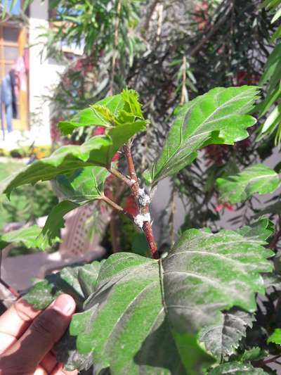 Your hibiscus is affected with Schmierläuse . Click on the green link for more information for diagnosis and control measures in the plantix libary.