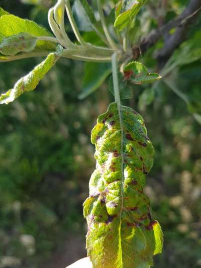 Ornamental Apple Leaf with dark area. Only Tetranychus or something else?