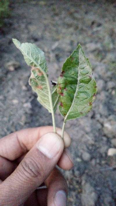 Learn more about PlantixLeaves are effected and have some brown spots and leaves are becoming more harder and shrinking.