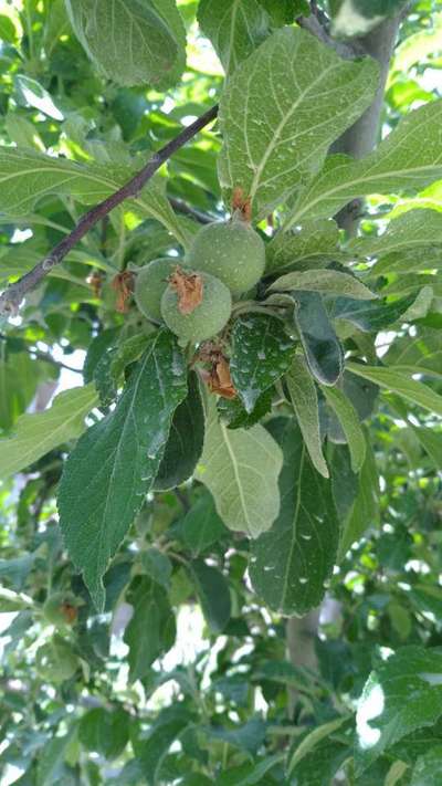 What is this? All of my high density fugi apples are suffering like this? Due to this problem they are making the others apple also suffer like this? And eventually they are falling from the tree before their harvest date. Please this is a great concern for me. I woukd be highly obliged if you solve my prjkwm problem. PLEASE