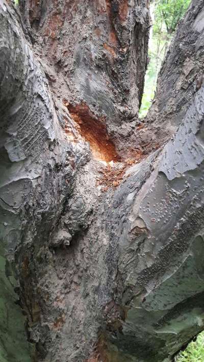 Mohammad Muzaffar Just mix blitox with clayey soil. And fill the infected portion with this mixture. At top you can use chaubatia paint on this clay soil mixture to prevent entry of water into this cavity.