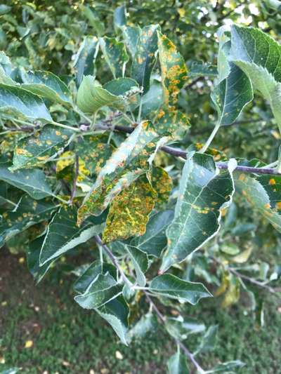 Learn more about PlantixIt has produced 2 apples but not nearly close to the healthy tree, and the spots are all over
