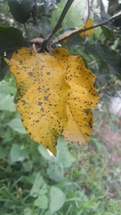Arvind Sharma yellow leaf with black spot is marsonina.. You will go for tebuconazole.. For control of wolly apple aphid spray metasystox.. If you spray chlorpyriphos there is problem of mite in orchard...