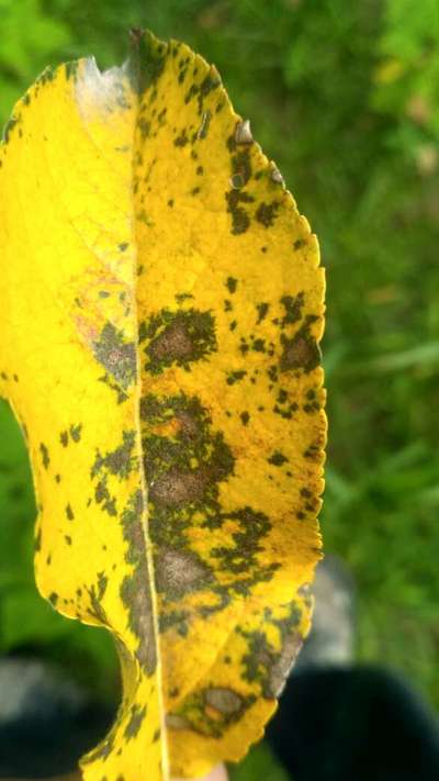 Gaurav Chauhan The brown spot is alternaria blight. Yellowing with black spot is marsonina blotch.. If there is more yellow leaves you can immediately spray tebuconazole 80 gm in 200 Lt of water.. It will drpp all the infected leaves and stop further infection.