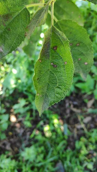 Hi Praveen Mehta ! This is Apple Scab symptoms on leaf. For details please click the link above to plantix library. You can use copperoxychloride/ chrorothalonil fungicide as foliar spray along with sanitation of your orchard to manage this disease Thanks for visiting plantix community.