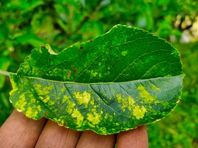 Decolourise and whitish apple leaves?