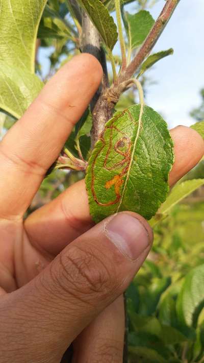 Apple leaves are affected with brown round spots initially then yellowing of leaves and falls off. Please let me remedy.