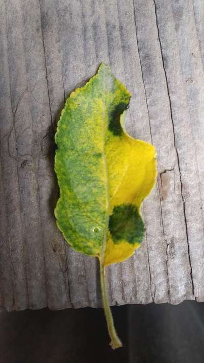 Hi Mirasif . It seems to be like and near symptoms likeApple Mosaic Virus . Click on green link for checking symptoms and taking control measures from plantix library.