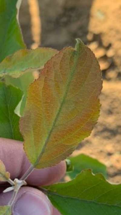 This is an apple plant leaf that turned color into red. Kindly please guide