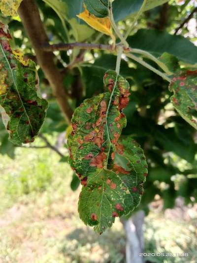 Some leaves of two three trees in orchard are afffe tes by this pls advice