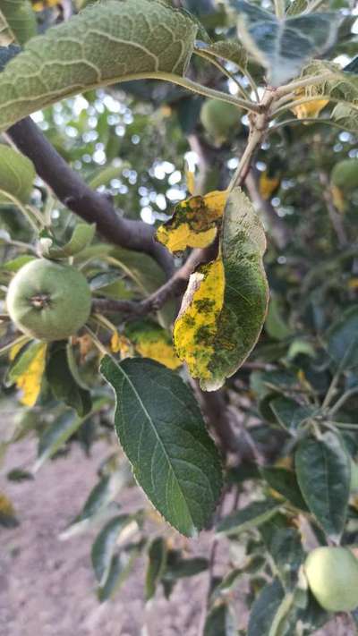 Some leaves of two three trees in orchard are afffe tes by this pls advice