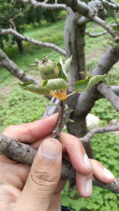 Learn more about PlantixThe apple tree is getting pinkish in colour. Leaves are small and shrunken upwards. Fruit growth is negligible and the tree seems dry.