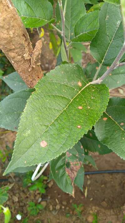 Learn more about PlantixThere are spots in the leaves of apple tree and aren't turning into yellow. Seeking the necessary treatment and the pesticides that can cure this! Thanks.
