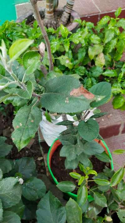Small circular lesions are being formed which later spreads to the whole leaf causing defoliation and ultimately the branch dries.