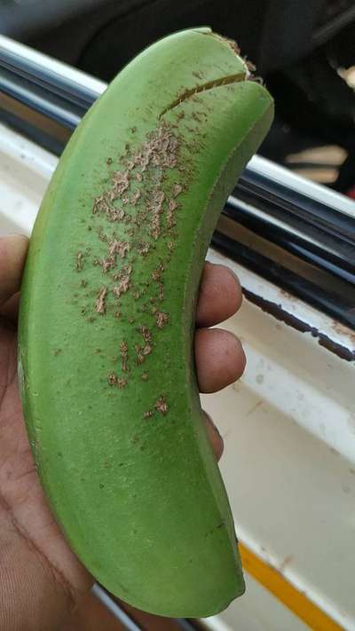 Hi Rajesh Godara . It's Banana Scab Moth . Click on green link for knowing symptoms and taking control measures from Plantix library. Thanks for visiting.