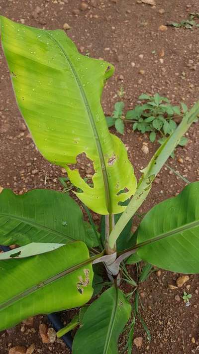 Hi Anil B . Looks like and initial stage of Banana Moth . For more details, click on green link given here for knowing symptoms and taking control measures from Plantix library.