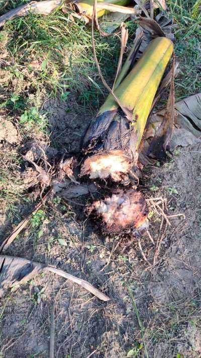 Learn more about PlantixRoot of the banana the is damaged by pests.showing white layer on the root.