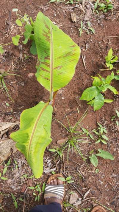 Hi Suleiman Isah . It's not a disease. Its inherent characteristic of some tissue culture Banana varieties. For more details, contact your seedlings supplier. Apart from above, it's also showing symptoms of Nitrogen Deficiency. Click on green link for checking symptoms and taking control measures from Plantix library. You can also use fertilizer calculater available here on home page of Plantix to increase your crop productivity.