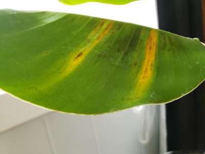 In the past week or so, black spots and yellow streaks have appeared on the lower leaves of my Musa 'Truly Tiny' banana, which lives indoors. It is growing well otherwise. It had some spider mites when I first bought it a couple of months ago but I haven't seen any since I manually removed them. Thanks!
