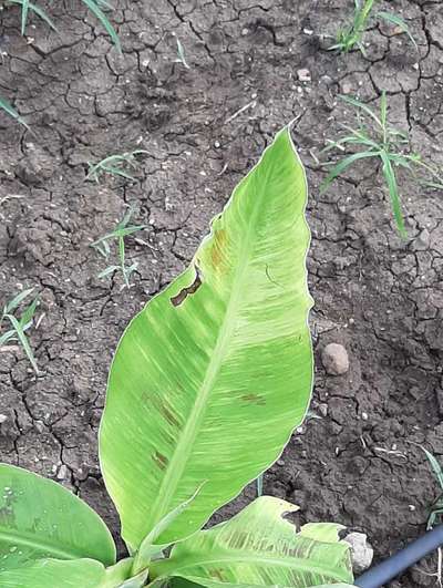 Hi Rishabh Patidar. It seems to be like Cucumber Mosaic Virus on Banana and Calcium Deficiency . Click on green links for checking symptoms and taking control measures from Plantix library.