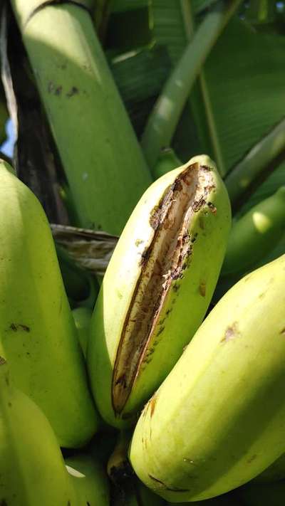 Hi Satya Giri . Check symptoms with Banana Rust Thrips and Fruit Cracking by clicking on green links for taking control measures from Plantix library.