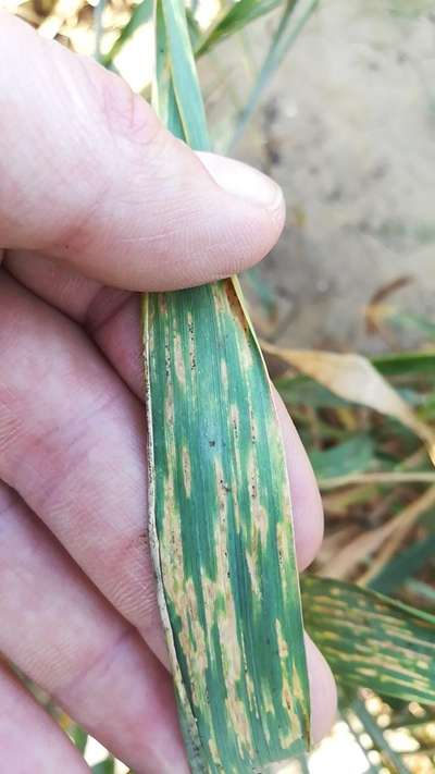 I have observed brown spor on leaves as well as spikes, Most of d leaves are infected.