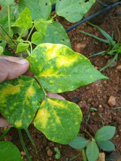 Hi Vijayshankar S Vijayshankar S. It's Mungbean Yellow Mosaic Virus . For more details, you are requested to click on green link given here for knowing symptoms and taking control measures from Plantix library. Also use fertilizer calculater, crop Advisory, see all tasks and weather report sections available here on home page of Plantix to increase your crop productivity.
