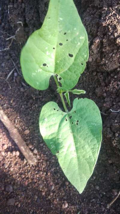 Beans leaf with white patches.