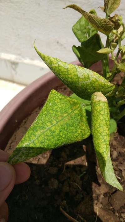Scattering brown spots on leaves,new leaves are shrunken look,flowers of bean wither away