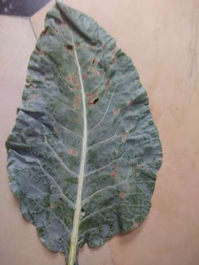 Cauliflower plants of 30 days old, younger leaves are yellowish in color and old leaves shows whiteish patches like burning on tips of the leaves.