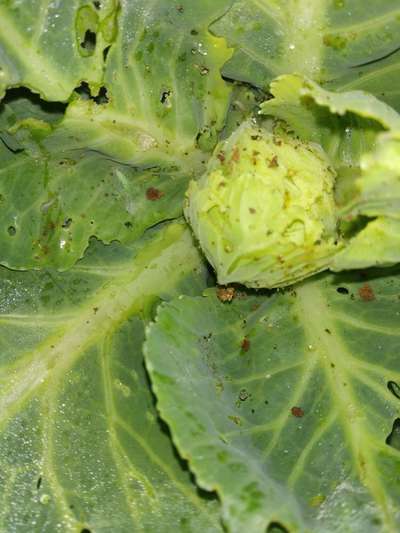 Uday Kiran We are plant cabbage on February 1st now it's change to 👆 like this. one cabbage plant 6-8 green insects... What solution Uday Kiran ?? What are pesticides used for this????