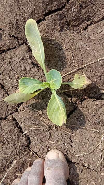 Discoloration on leaf border and crinkled appearance of cabbage leaves