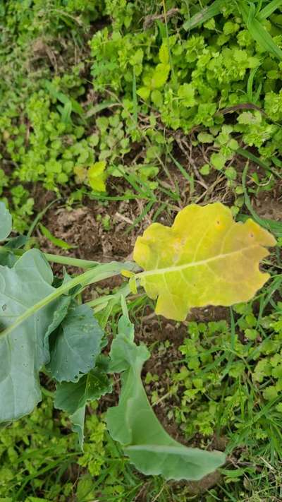 broccoli plant bottom leaves are turning this color and drying up can anyone inform me of the issue