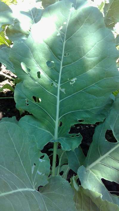 Hi Waseem Sultan. It looks like Cabbage White Butterfly effect. Click on green link for checking symptoms and taking control measures from Plantix library.