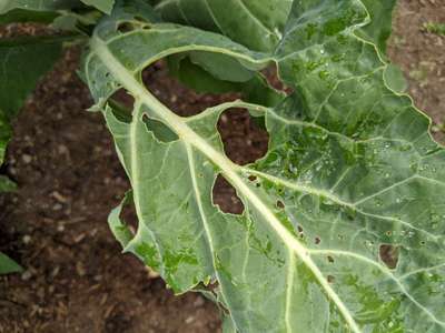 Learn more about PlantixBig holes and eaten up big leaves and lower leaves turn yellow.