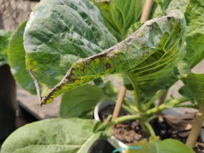Edges of cauliflower plant leaves are turning grey brownish. Is this some disease? What should be done?