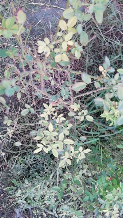 Hi Ramesh. Remove weeds around the plant first. As per your sent image - your rose plant is suffering from Iron Deficiency , Potassium Deficiency and Rose Mildew . Click on green links for checking symptoms and taking control measures from Plantix library. Also need to apply good amount of Farm Yard manure or Vermicompost once in 6 months to get good growth.