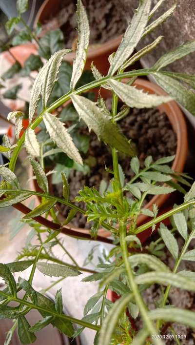 Learn more about PlantixMy marigold plant's leaves have curled and browness in the corner of the leaves