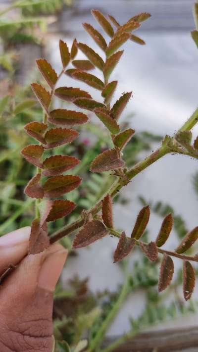 Hi Ashvinbhai Patoliya. It looks like Phosphorus Deficiency . Click on green link for checking symptoms and taking control measures from Plantix library.