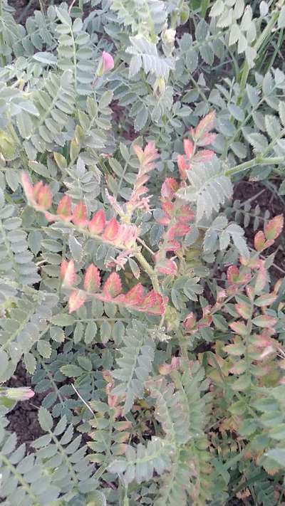 In my field of chickpea few plant leaves are turning reddish and look picture and give suggestions thanks