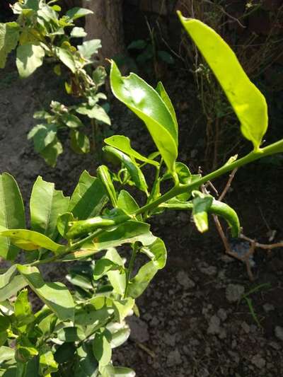 I have this citrus plant in my kitchen garden. This is the first time it is bearing fruits. The old leaves are getting eaten away and the new leaves are bending. Fruits are still small so cant tell if they will be healthy. Biological control, if any, will be highly appreciated. Thanks.