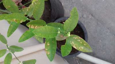 so the leaves of my lemon tree are starting to Brown / wighton in dots and then spreading into clusters some bits of leaf of fully shredding and disintegrating please help
