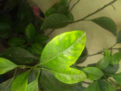 Yellow patches has developed on newer leaves on Mausambi plant. Please advice.