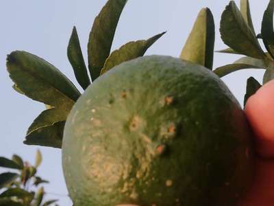 Kinnow fruit. It is affected my fungus. I guess citrus canker is the disease.