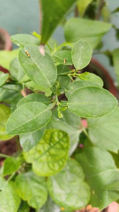 Hi Bhavya Kaushik. It's Citrus Butterfly effect. Click on green link for checking symptoms and taking control measures from Plantix library. I think some other problem also on leaves - but not clear through this image. Lets send some more clear and closer images with your proper query. Better to use fertilizer calculater and weather report sections available here on home page of Plantix to get good growth of your plant.