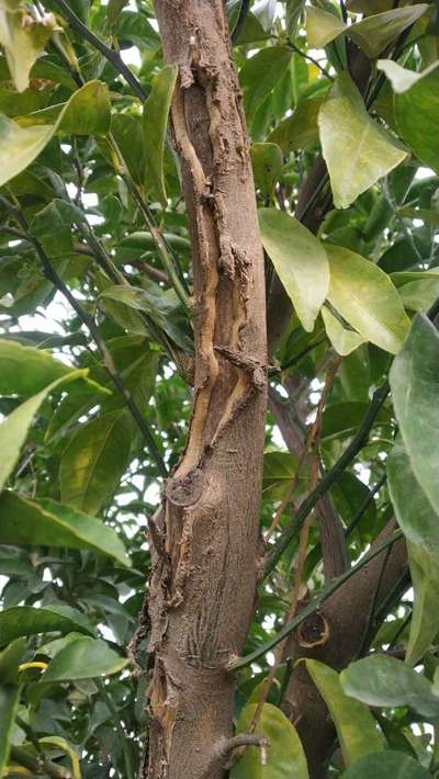 Hi Divay Sinwer. It's Gummosis of Citrus . Click on green link for checking symptoms and taking control measures from Plantix library.