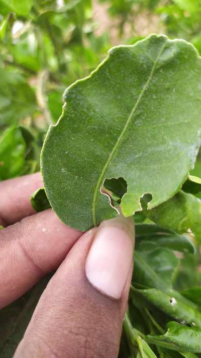 Hi Muttineni Srinath. It's severely effected by Citrus Leaf Miner and Citrus Butterfly . Click on green links for checking symptoms and taking control measures from Plantix library.