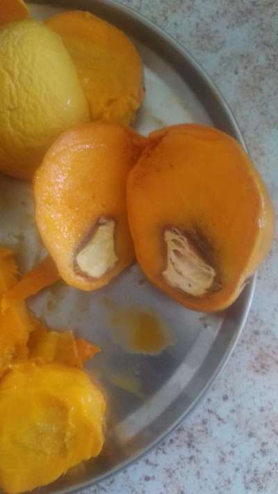 Sir, symptoms observed in fully ripen mango fruit.. when we cut it this symptoms observed. Plz identify it & suggest how to control.