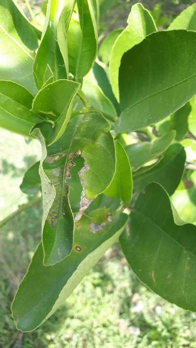Hi Masoodashraf63 . Your citrus plant is severely effected by Citrus Butterfly , Citrus Thrips , Bacterial Spot of Citrus and Sooty Mold . Click on green links for checking symptoms and taking control measures from Plantix library .
