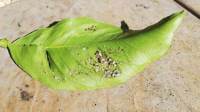 Some kind of yellow eggs seen on lemon leaves which later turn to larvaes and eat the fresh leaves.